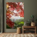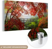 Peinture sur verre - Japonais - Pont - Érable japonais - Arbres - Nature - Verre acrylique - Photo sur verre - 100x150 cm - Peinture sur verre nature - Décoration murale murale verre - Décoration murale - Peinture verre