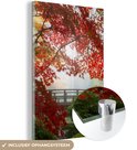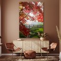 Peinture sur verre - Japon - Jardin botanique - Rouge - Vert - Nature - Acryl - Salon - Chambre