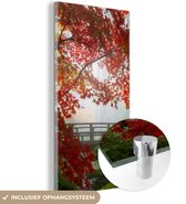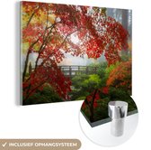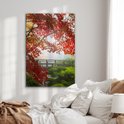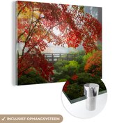 Peinture sur verre - Japonais - Pont - Érable japonais - Arbres - Nature - Verre acrylique - Photo sur verre - 80x120 cm - Peinture sur verre nature - Décoration murale murale verre - Décoration murale - Peinture verre