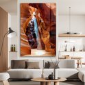 Peinture sur verre - La lumière du soleil à travers les crevasses étroites de l'Antelope Canyon - 120x180 cm - Peintures sur verre acrylique - Photo sur Glas