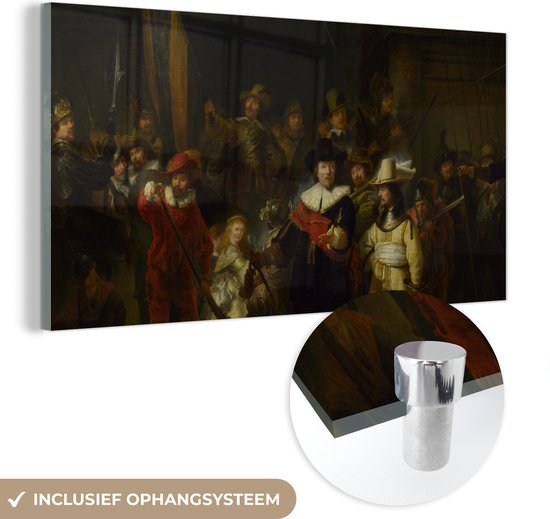 Peinture sur Verre - La Nachtwacht - Peinture de Rembrandt van Rijn - 40x20 cm - Peintures sur Verre Peintures - Photo sur Glas