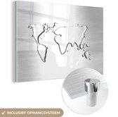 Peinture sur verre - Mappemonde rouge sur fond blanc - noir et blanc - 60x40 cm - Peintures Plexiglas