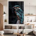 Peinture sur Verre - Martin-pêcheur - Blauw - Plantes - 100x150 cm - Peintures Acryliques - Photo sur Glas