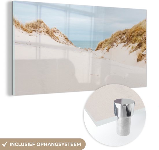 MuchoWow® Peinture sur verre 80x160 cm - Peinture acrylique sur verre - Mer derrière les dunes - Photo sur verre - Peintures