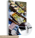 Peinture sur verre MuchoWow® 80x120 cm - Peinture acrylique sur verre - Bateaux flottants au marché en Thaïlande - Photo sur verre - Peintures