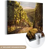 Peinture sur verre MuchoWow® - Grappes de raisin sur une vigne dans un champ - 150x100 cm - Peintures sur verre acrylique - Photo sur Glas