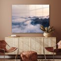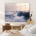 Peinture sur verre MuchoWow® - Le brouillard passe sur une chaîne de montagnes - 120x90 cm - Peintures sur verre acrylique - Photo sur Glas