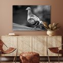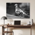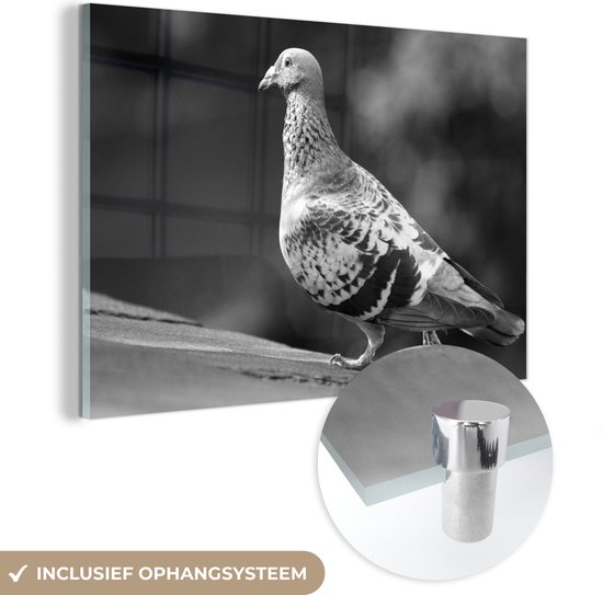 Peinture sur verre MuchoWow® - Pigeon voyageur sur un toit - noir et blanc - 120x80 cm - Peintures sur verre acrylique - Photo sur Glas