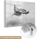 Peinture sur verre - Hibou attrape une proie en noir et blanc - 120x80 cm - Peintures sur Verre Peintures - Photo sur Glas