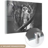 MuchoWow® Peinture sur Verre - Hibou assis sur une branche - noir et blanc - 120x80 cm - Peintures sur Verre Peintures - Photo sur Glas