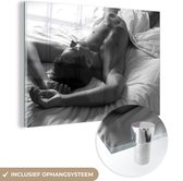 MuchoWow® Peinture sur Verre - Homme se couvre d'une couverture - noir et blanc - 120x80 cm - Peintures sur Verre Acrylique - Photo sur Glas