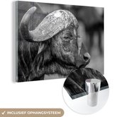Peinture sur verre - Piqueboeuf à bec rouge sur un buffle - noir et blanc - 120x80 cm - Peintures sur Verre Peintures - Photo sur Glas