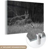 MuchoWow® Peinture sur verre 120x80 cm - Peinture sur verre acrylique - Cerf au pâturage - noir et blanc - Photo sur verre - Peintures