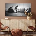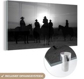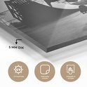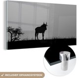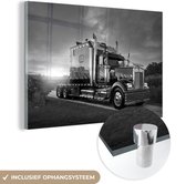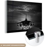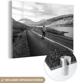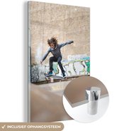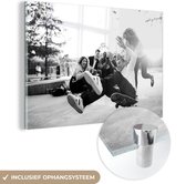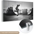 Peinture sur verre MuchoWow® - Un garçon fait une cascade avec son skateboard pendant le coucher du soleil - noir et blanc - 120x60 cm - Peintures sur verre acrylique - Photo sur Glas