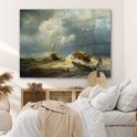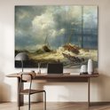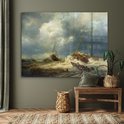 Peinture sur verre - Navires dans une tempête sur la côte néerlandaise - peinture d'Andreas Achenbach - 160x120 cm - Peintures sur verre acrylique - Photo sur Glas