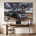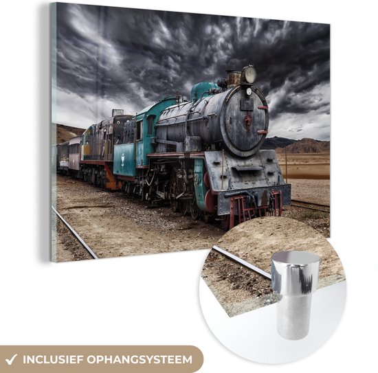 Peinture sur verre - Nuages sombres au-dessus de la locomotive à vapeur - 150x100 cm - Peintures en plexiglas