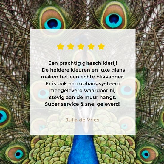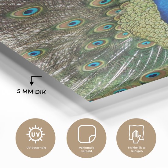 Peinture sur verre - Paon - Couleurs - Ressorts - 100x150 cm - Peintures Plexiglas