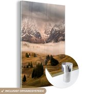 Peinture sur verre - Paysage - Berg - Neige - Arbres - Peinture sur verre - 120x80 cm - Décoration murale - Plaque de Verres - Photo sur verre