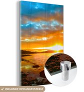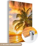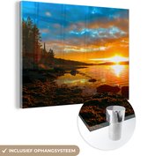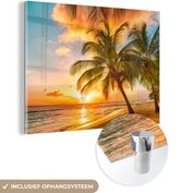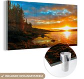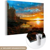 Peinture sur verre - Peinture sur verre - Coucher de soleil - Arbres - Mer - Photo sur verre - Décoration de chambre - Décoration murale nature - Verre acrylique - 60x80 cm - Peintures de salon