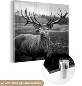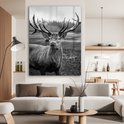 Tableau sur verre - Animal - Cerf - Zwart - Wit - Acryl - Salon - Chambre