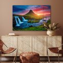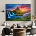 Peinture sur verre - Photo sur verre - Cascade - Islande - Coucher de soleil - Berg - Verre acrylique - Peinture sur verre nature - Peinture sur verre - 120x80 cm - Décoration murale - Décoration Décoration murale
