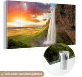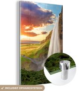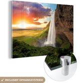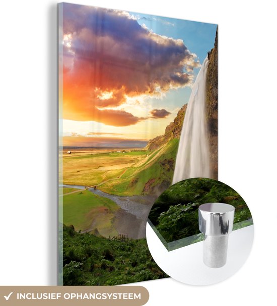 Peinture sur verre - Photo sur verre - Cascade - Rocher - Coucher de soleil - Verre acrylique - Peinture sur Verres - Décoration murale - Feuille acrylique - 60x80 cm - Décoration murale