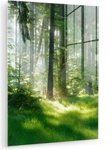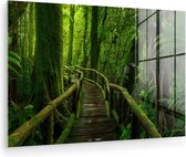 Peinture sur verre - Photo sur verre - Forêt - Arbres - Jungle - Chemin - Vert - Décoration murale - Verre acrylique - 60x40 cm - Décoration murale murale - Peinture sur verre