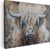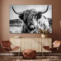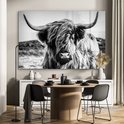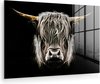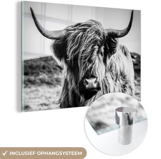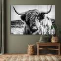 Peinture sur verre - Photo sur verre - Highlander écossais - Nature - Vache - Zwart et blanc - Verre acrylique - Décoration murale - 150x100 cm - Peinture sur verre Highlander écossais - Peinture sur verre - Décoration d'intérieur