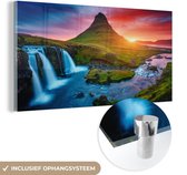 Profitez de la nature au quotidien avec ce tableau sur verre de MuchoWow! La décoration murale montre la célèbre montagne Kirkjufell en Islande. Avec deux cascades au premier plan. Enrichissez votre salon, chambre ou bureau avec cette photo sur verre !Spécifications produit