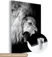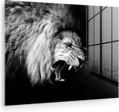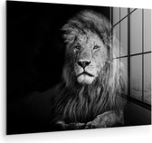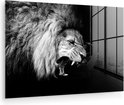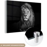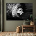 Peinture sur verre - Photo sur verre - Verre acrylique - Animaux - Lion - Zwart - Wit - 180x120 cm - Décoration de chambre - Peinture sur verre animaux - Décoration murale verre - Peinture sur verre lion