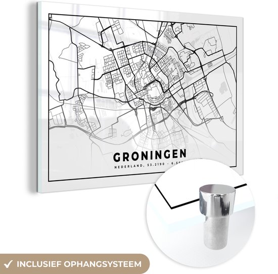Peinture sur Verre - Plan de la Ville - Groningue - Pays- Nederland - 30x20 cm - Peintures sur Verre Peintures - Photo sur Glas