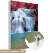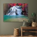 Peinture sur verre - Plaque acrylique - Cascade - Érable japonais - Rouge - Water - Photo sur verre - Verre acrylique - Peinture sur Verres - Décoration de chambre - 120x90 cm - Décoration murale