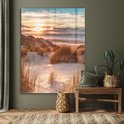 Le soleil couchant donne au paysage de dunes de cette peinture sur verre une lueur chaleureuse. Profitez de cette photo sur verre au quotidien en l'accrochant dans votre salon, votre chambre ou votre bureau !Spécifications produit