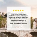 Ce produit est imprimé sur une plaque de verre. Grâce à cette texture lisse et brillante, la technique d'impression UV assure une belle impression brillante. Une photo sur verre est imprimée très nettement avec des couleurs très vives. En option, un système de suspension peut être commandé avec le produit pour fixer facilement l'impression au mur.