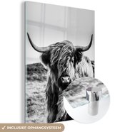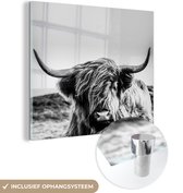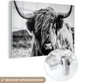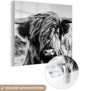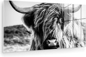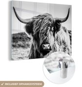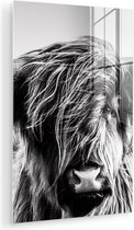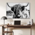 Peinture sur verre Scottish Highlander - Animaux - Vache - Zwart et blanc - Décoration murale sur verre - Photo sur verre - 120x80 cm - Décoration murale murale - Peinture sur verre