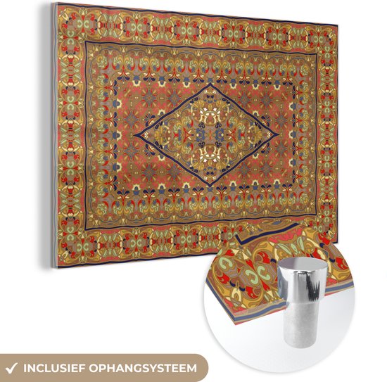 Peinture sur Verre - Tapis Persan - Tapis - Jaune - Rouge - Salon - Chambre