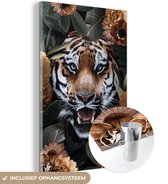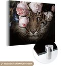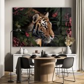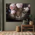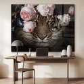 Tableau sur verre - Tigre - Fleurs - Roses - Salon - Chambre
