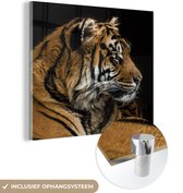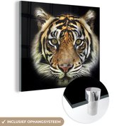 Peinture sur Verre - Tigre - Tête d'Animal - Zwart - 90x60 cm - Peintures sur Verre Peintures - Photo sur Glas
