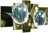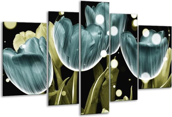 Peinture sur verre Tulipe | Bleu vert | 170x100cm 5Liège. Cette peinture sur verre fait partie de la collection GroepArt et c'est un moyen simple et rapide de transformer complètement n'importe quel mur! Nos peintures sur verre contiennent de belles images imprimées sur du verre de 4 mm d'épaisseur. Cette peinture est disponible en 40 tailles sur notre site Internet. Personnalisation possible! Cette peinture sur verre mesure 170 cm x 100 cm. Incl. jeu de suspension (à confirmer par vous-même). Le paquet contient 5 peinture sur verre à trappe, manuel, ensemble de suspension, protège avec du papier d'aluminium, emballé dans une boîte en bois robuste.