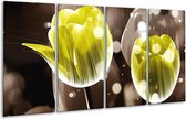 Peinture sur verre Tulipe | Jaune, gris | 160x80cm 4 Liège. Cette peinture sur verre fait partie de la collection GroepArt et c'est un moyen simple et rapide de transformer complètement n'importe quel mur! Nos peintures sur verre contiennent de belles images imprimées sur du verre de 4 mm d'épaisseur. Cette peinture est disponible en 40 tailles sur notre site Internet. Personnalisation possible! Cette peinture sur verre mesure 160cm x 80cm. Incl. jeu de suspension (à confirmer par vous-même). Le paquet contient 4 peinture sur verre à trappe, manuel, jeu de suspension, protège avec du papier d'aluminium, emballé dans une boîte en bois robuste.