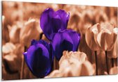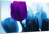Peinture sur verre tulipe | Violet, bleu, blanc | 120x70cm 1Hatch | Tirage photo sur verre | F003819