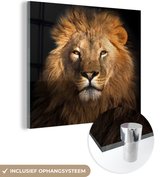Peinture sur verre - Verre acrylique - Lion - Zwart - Animal - Décoration murale - Peinture sur verre - 90x90 cm - Photo sur verre