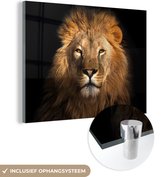 Peinture sur verre - Verre acrylique - Lion - Zwart - Animal - Décoration murale - Peinture sur verre - 120x90 cm - Photo sur verre