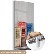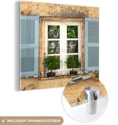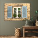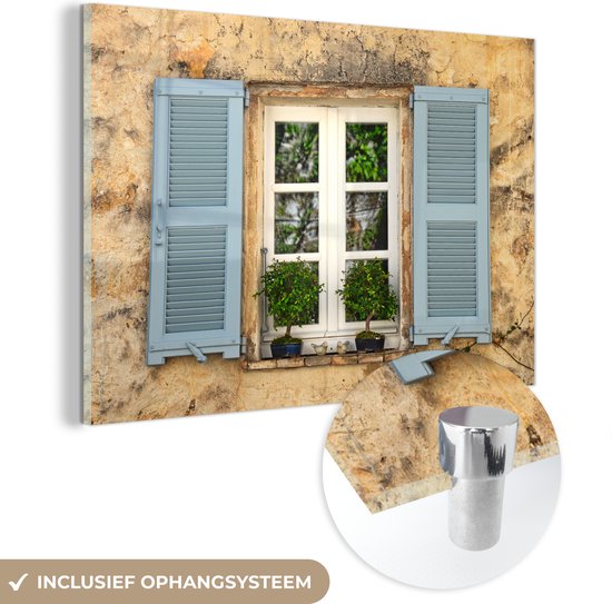 Peinture sur verre - Vieux Mur aux volets bleus - 120x80 cm - Peintures sur Verre Peintures - Photo sur Glas
