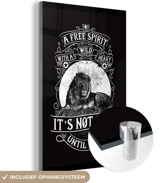 Peintures en plexiglas - Lion - Rétro - Zwart - Wit - Sort - 120x180 cm