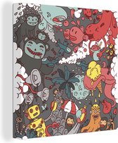 Tableau sur toile Illustration monstres espiègles - 20x20 cm - Décoration murale