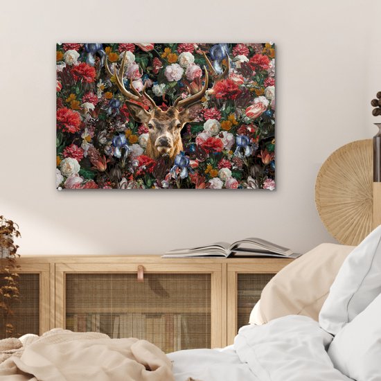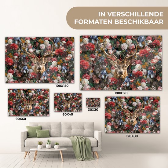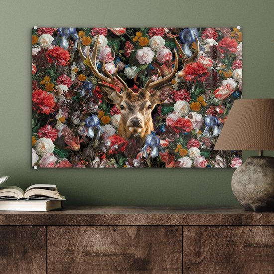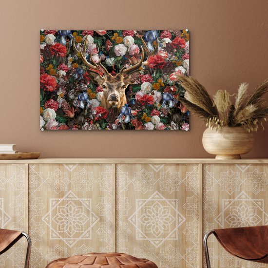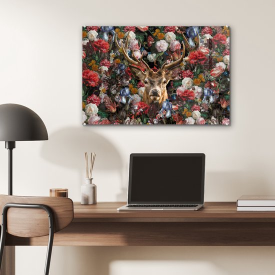 Peintures Plexiglas - Cerf - Bois - Fleurs - 60x40 cm - Peintures sur verre