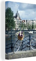 Peintures sur toile - Amsterdam - Pont - Vélo - 150x100 cm - Décoration murale