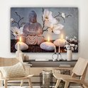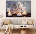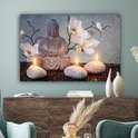 Peintures sur toile Bouddha - Bougies - Grijs - 120x80 cm - Décoration murale