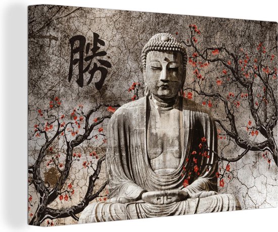 Peintures sur toile Bouddha - Statue - Arbre - 90x60 cm - Décoration murale